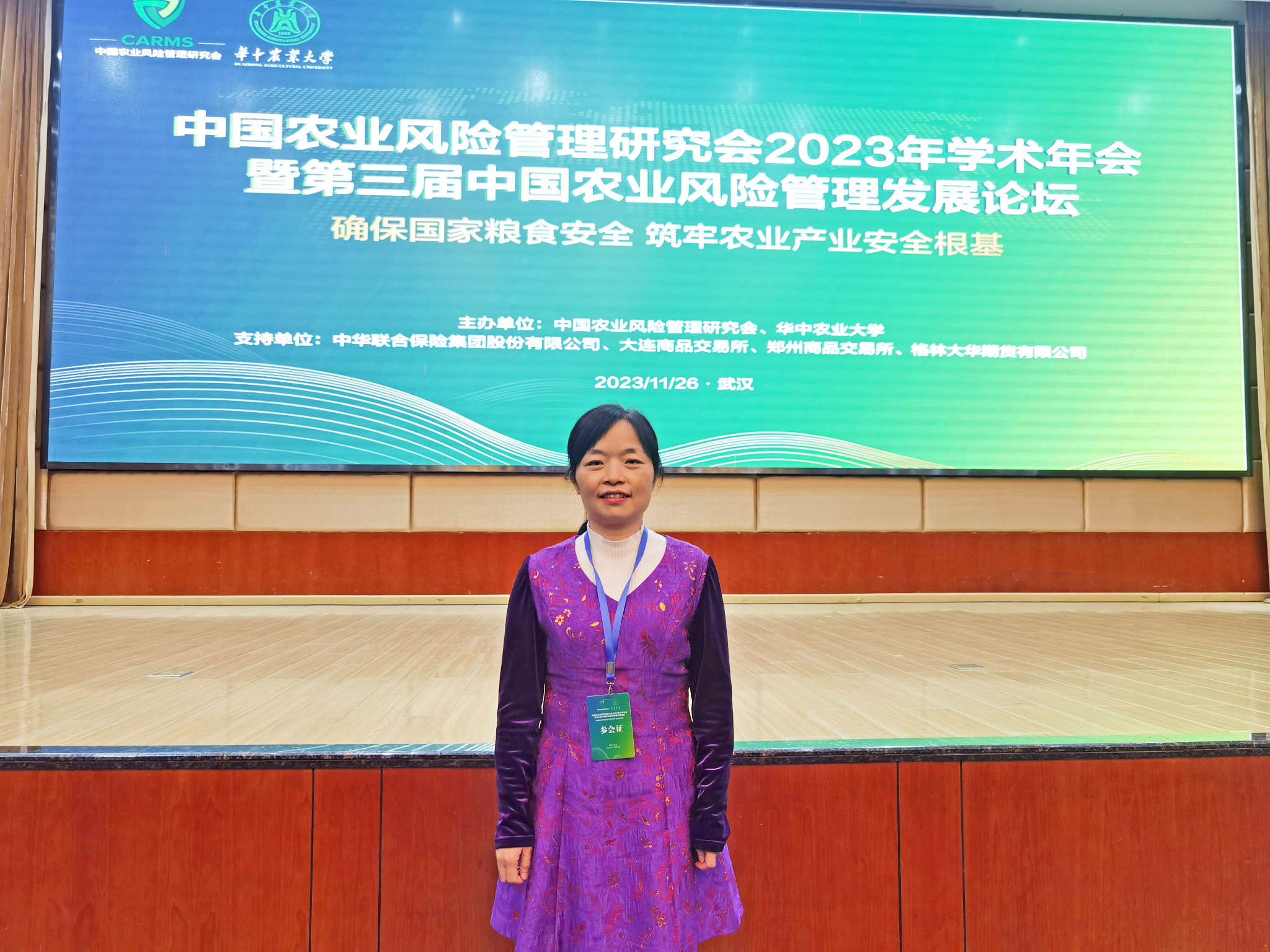 2023年11月26日,由农业农村部政策改革司和农业农村部农村经济研究中心指导,中国农业风险管理研究会和华中农业大学联合主办的中国农业风险管理研究会2023年学术年会暨第三届中国农业风险管理发展论坛在华中农业大学召开。此次论坛的主题是“确保国家粮食安全 筑牢农业产业安全根基”。来自中央有关部门、科研机构、高等院校、农业风险管理单位等领导和专家学者共计200余人参会。公司农林经济管理系主任赵海燕教授应邀参加论坛。