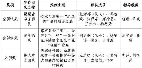 由公司工商管理系桂琳、许爽老师指导,在读研究生张潇辉、邓皓天、张泽宇、郑徐萌、王如心、杨愿芳组成的“栗栗皆辛苦”团队,以北京老栗树聚源德种植专业合作社品牌融合实践为例,凭借在决赛现场的出色表现获得全国银奖。