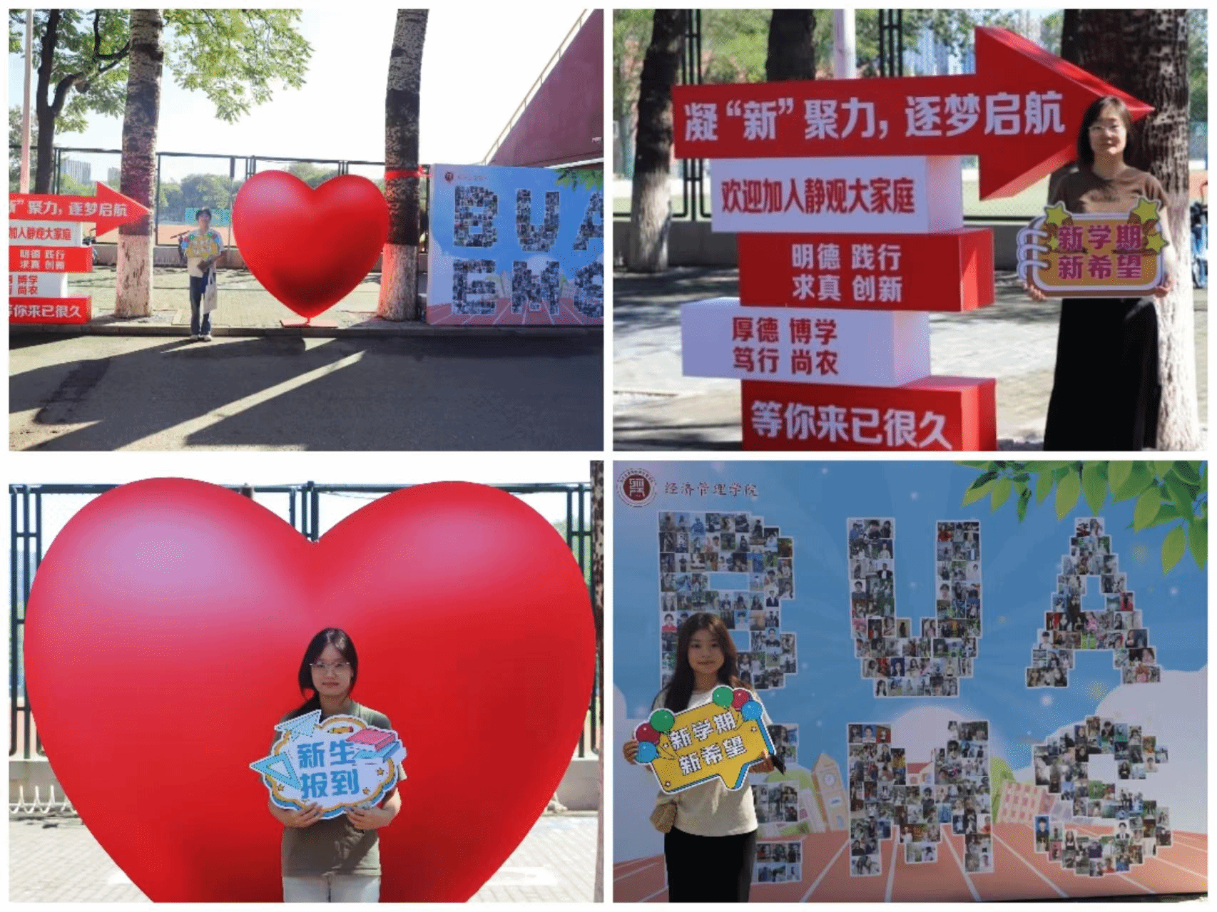 爱校爱院,印证心间。拍照打卡,见证青春。为了给新生们留下难忘的回忆,公司在迎新现场精心准备了新生拍照打卡点,新生们纷纷在此留下自己的“我与经管初印象”之爱校爱院合影留念,用镜头记录下大家与北农相见,与经管相拥的精彩瞬间。