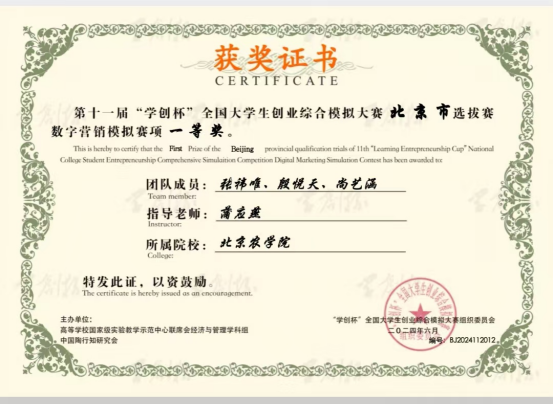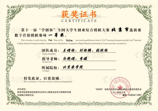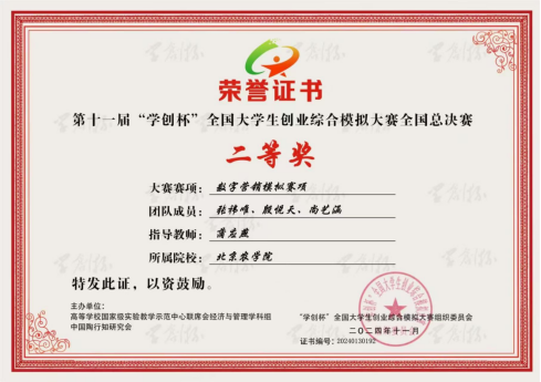 据悉,本次大赛全国超过1500所高校参赛,经过层层选拔,172所高校、242支团队的近千名师生进入全国总决赛。总决赛全面考察了参赛团队的创新思维、商业策划、团队协作以及市场分析能力。张祎唯、殷悦天和尚艺涵3名同学凭借出色的团队协作、敏锐的市场洞察力和扎实的专业技能,在数字营销模拟赛项中表现出色,最终荣获该赛事全国总决赛二等奖。