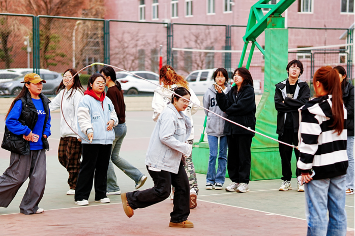 在快速甩动的跳绳间轻盈跳跃,节奏明快