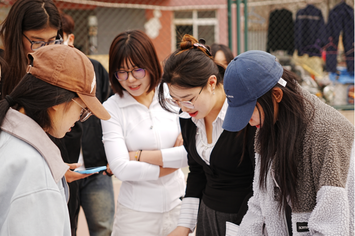 观赛的同学欢声笑语,现场气氛热烈非凡