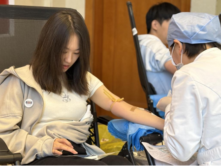上午9时,献血点前已排起长队,同学们在公司志愿者的引导下有序完成登记、体检、采血等流程。许多同学是首次参与献血,他们坦言“紧张但更感光荣”。24农业管理专业的刘阳表示:“作为研究生,能用这种方式回馈社会特别有意义。想到自己的血液可能挽救生命,就觉得所做的一切都非常值得。”