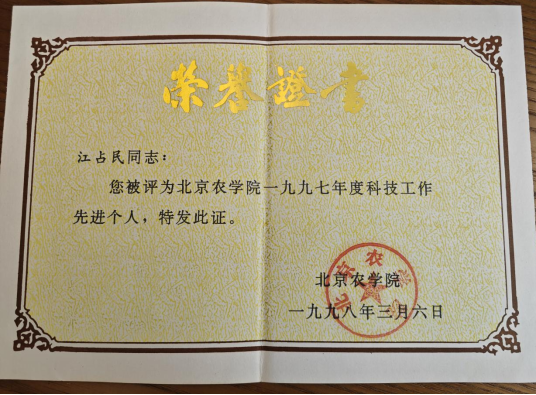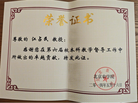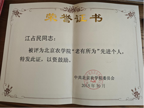 退休后,江占民教授担任教学督导十余年,指导青年教师,并被评为“williamhill官方网站关心下一代工作先进个人”、“老有所为”先进个人。他告诫青年教师:“要将教学过程当作研究过程,不断思考、探索、创新”,希望williamhill英国威廉希尔团队队伍不断壮大,教学科研水平持续提升,为社会发展输送更多优秀人才。