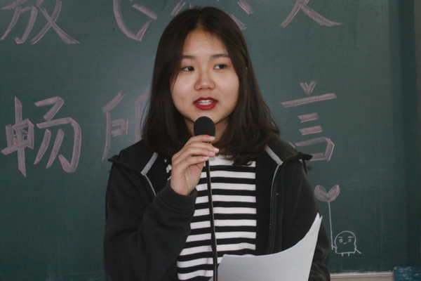 本次活动由接力画图,成语接龙,说说心里话,畅所欲言四个环节组成。在接力画图环节,经过一轮热身赛后,同学们充分了解了游戏规则,越发地得心应手,大家的热情被充分地激发。在成语接龙环节,同学们充分发挥自己平时的知识积累,积极参与到活动中来。在说说心里话环节,由各专业心理委员上台抽取同学提前写好的烦恼和想法,并给出他们意见,台下的同学也没有闲着,采用写便签的形式给同学提出自己的建议,来帮助同学走出困境。在最后的畅所预言环节中,针对宿舍凶杀案,弱势群体,身边常见的心理疾病以及心理问题的排解方法,大家畅所欲言地进行了激烈地讨论,整场讨论高潮迭起,大家发言积极踊跃。在随后的发言环节中各专业选派一名代表上台阐述小组讨论的结果,得出沟通在同学交往中的重要性以及换位思考等结论。