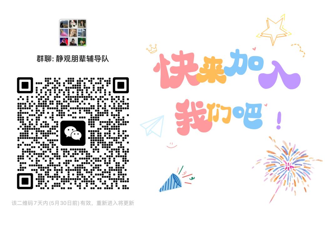 同时,也热忱欢迎更多同学加入静观朋辈辅导队,成为我们中的一员,用自己的光和热,温暖身边的人。众人拾柴火焰高,当更多人汇聚在一起,定能形成强大的力量,照亮和温暖更多的同学。