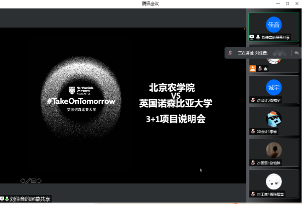 2022年5月6日中午,williamhill英国威廉希尔采取线上的形式召开了2022年英国诺森比亚大学“3+1”联合培养项目招生宣讲会。此次会议由英国诺森比亚大学国内项目负责人刘佳音老师主讲,公司主管外事工作刘笑冰副经理、外事秘书余洁老师和部分本科生参与了本次会议。
