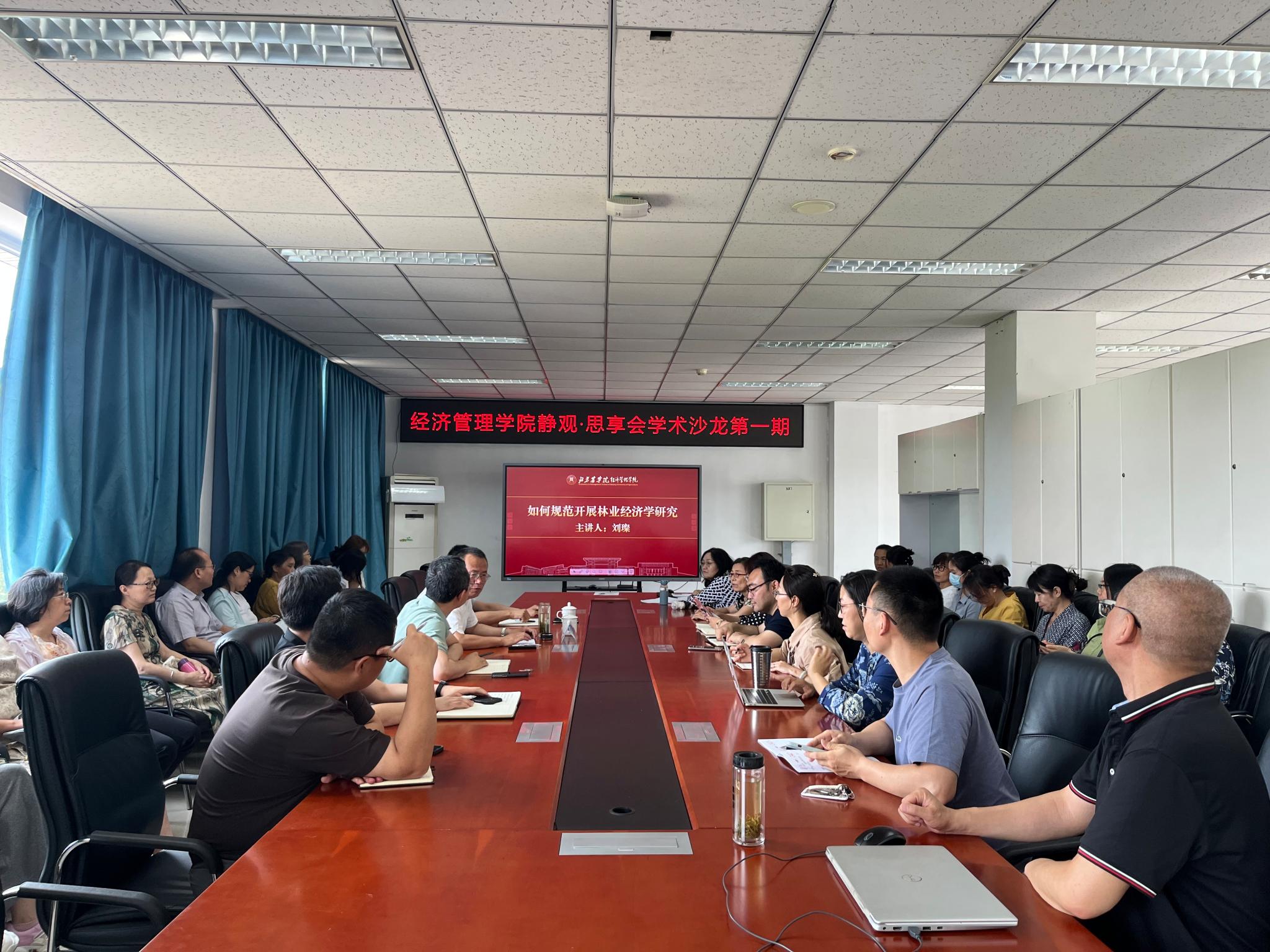 6月18日下午,williamhill英国威廉希尔在经管楼401会议室成功举办了首期“静观·思享会”学术沙龙。此次活动特邀公司高层次人才刘璨教授担任主讲嘉宾。刘璨教授以“如何规范开展林业经济学研究”为题,为公司教师带来了一场精彩的专题报告。沙龙由经理刘铁军主持,公司全体专业教师积极参与。