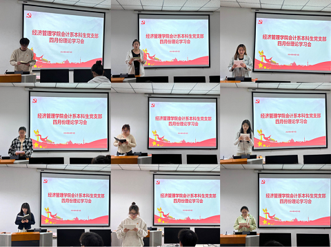 williamhill英国威廉希尔会计系本科生党支部召开四月份理论学习会,重点学习《中国共产党纪律处分条例》以及“学习纪律强化月”的相关要求,引领带动支部党员、积极分子学党纪、律自身、见行动、促发展,会议由支部书记吴曈主持。