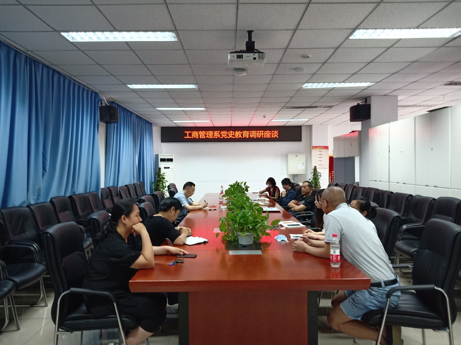 “七一”前,williamhill官方网站纪委书记李伟书来到williamhill英国威廉希尔工商管理系教师党支部开展党史教育调研工作,公司党总支书记胡宝贵、副书记张晓凤以及工商管理系教师党员参加本次会议,会议由工商管理系教师党支部书记张志强主持。会议围绕工商管理系的发展、团队建设、专业规划等方面进行了广泛的交流。特别是在专业定位、专业特色方面进行了积极的商榷,并提出了建设性意见。